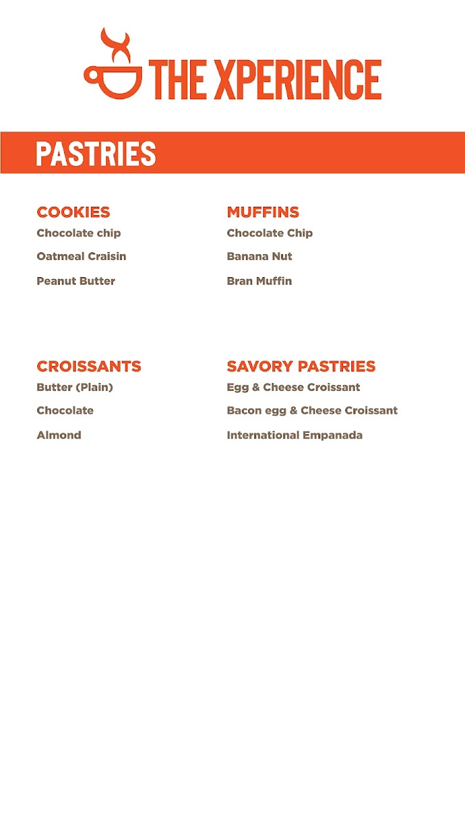 - Xperience Beverages: Indulge in the seasonal delights like the Egg Nog White Chocolate Mocha Chai Latte or the robust Xperience Apple Cider Spice.